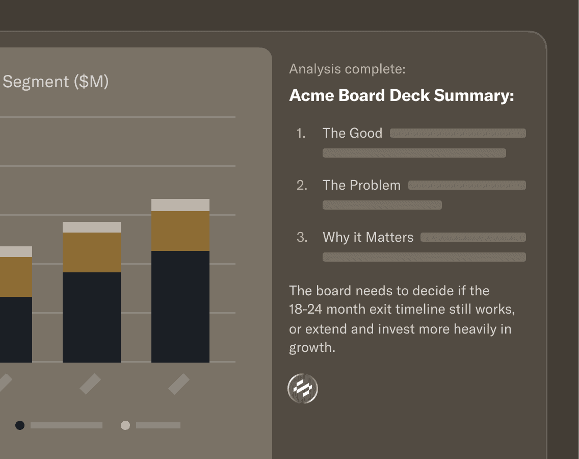 Transforms financial data into board-ready narratives with context and footnotes. Identifies what matters and explains why. Complete paragraphs in minutes, not hours.
